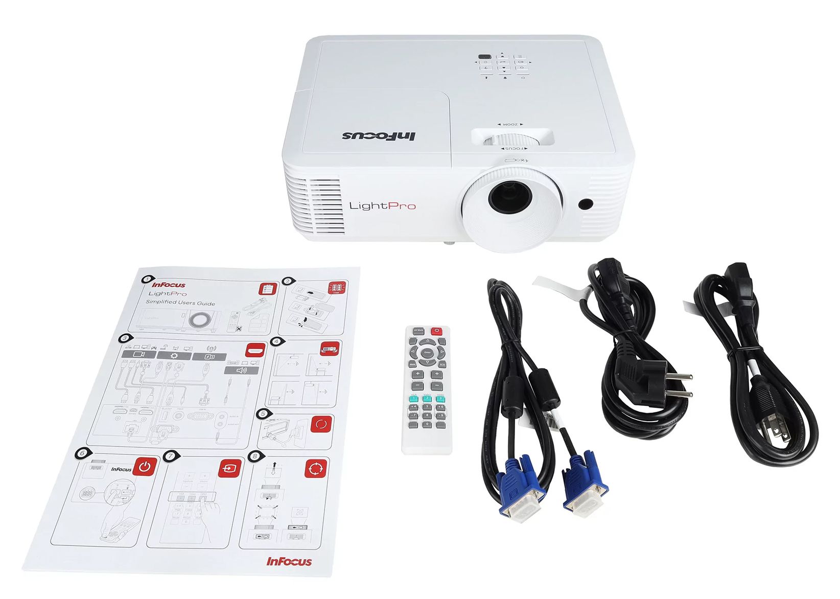 Комплектация: Проектор, ИК-пульт ДУ, шнур питания, кабель VGA, руководство пользователя