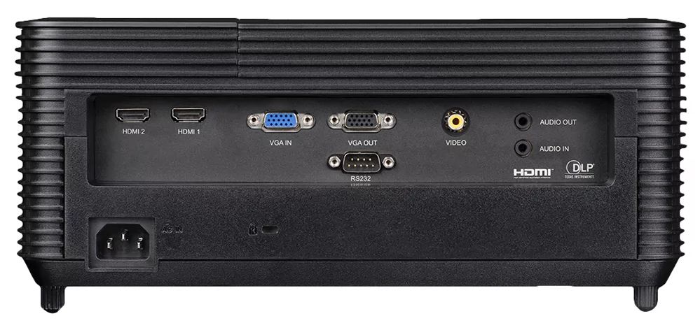 Тип: Проектор DLP, 4000 ANSI Lm, WXGA (1280x800), 28500:1, (1.54-1.72:1) 3.5mm in, Composite video, VGAin, HDMI 1.4aх3 (поддержка 3D), USB-A (клав., мышь), лампа 15000ч.(ECO mode), 3.5mm out, Monitor out (VGA), RS232, 21дБ