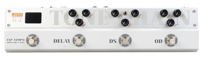 JOYO TONE CHAIN - процессор с эффектами дисторшн, овердрайв, дилей(с функцией TAP TEMPO), эмуляцией кабинета, тюнером, поддержкой петли эффектов. У TONE CHAIN есть стерео и балансный выходы, что делает расширяет границы возможностей эксплуатации.