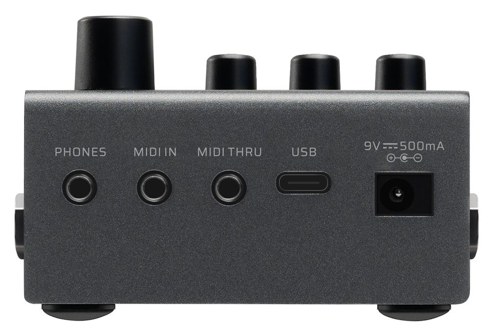 Входы/выходы: 1 x 1/4" инструментальный выход, 1 x 1/4" вход для подключения педали экспрессии, 2 x 1/4" аудиовыход, 1 x 1/4" выход на наушники, 1/8" TRS MIDI IN / MIDI THRU