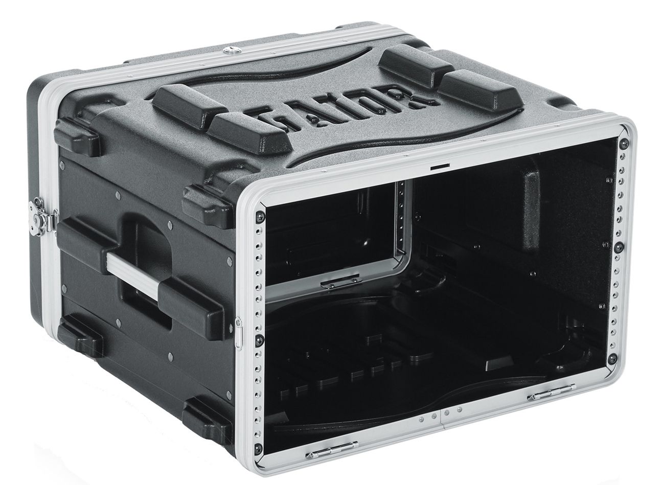 Gator GR-6L переносной рэковый кейс на 6 приборов, стальные рельсы, глубина 19'', пластик (имеет замки, закрывающиеся ключем). Вес 6.34 кг.