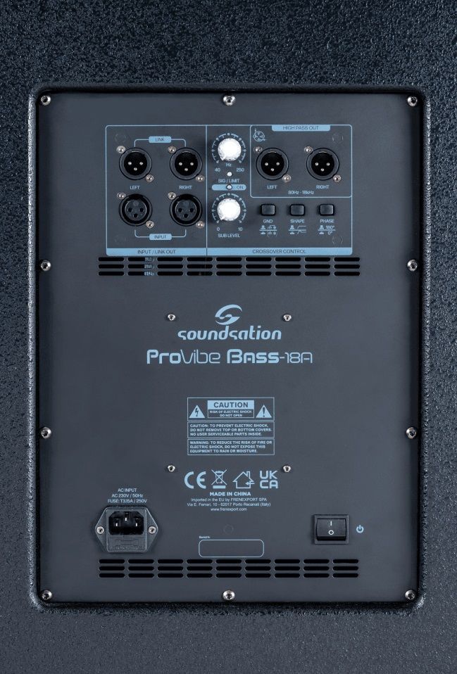 Сабвуфер Soundsation Provibe-Bass-18A станет идеальным дополнением к акустическим системам серии Soundsation ProVibe, обеспечивая более мощное и насыщенное звучание. Прецизионные стереокроссоверы интегрируются с любыми акустическими системами, создавая профессиональную и простую в настройке систему звукоусиления. 18-дюймовый сабвуфер работает от усилителя класса D с пиковой мощностью 1800 Вт. Стереокроссовер оснащен прецизионными фильтрами с регулируемой частотой среза от 40 до 250 Гц и крутизной спада 24 дБ/октава. Все входы, фильтрованные выходы и линк-выходы балансные и оснащены разъемами XLR.