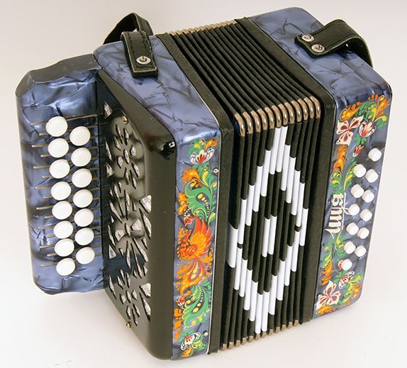 • Клавиатуры: правая – двухрядная, пуговичная (15 клавиш); левая – двухрядная, кнопочная (12 кнопок).