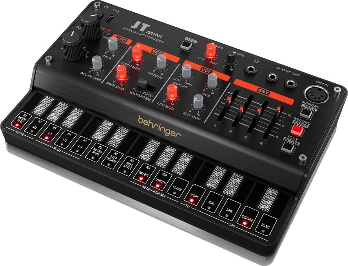 Сверхкомпактный, ультрапортативный синтезатор JT MINI оснащён VCO с переменной волновой формой, широтно-импульсной модуляцией и 16-шаговым Motion секвенсором, а его компактные размеры позволяют легко поместить его в рюкзаке или кофре!