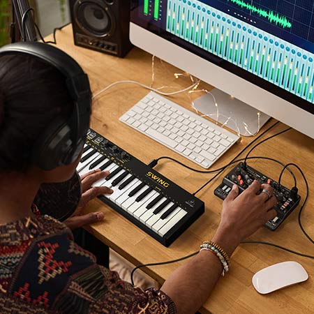 Уникальный 16-шаговый motion секвенсор позволяет записывать движения ручек и создавать замысловатые мелодии. Воспользуйтесь разнообразными режимами игры, включая поли, унисон, октавы, квинты, кольцевой унисон и кольцевой поли, чтобы получить разнообразную звуковую палитру!