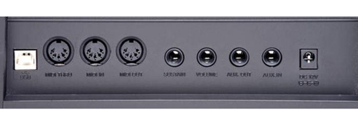 Входы и выходы: DC 12V, наушники, Aux In, Aux Out, сустейн педаль, педаль экспрессии, MIDI In, MIDI Out, MIDI Thru, USB порт, USB Device Terminal