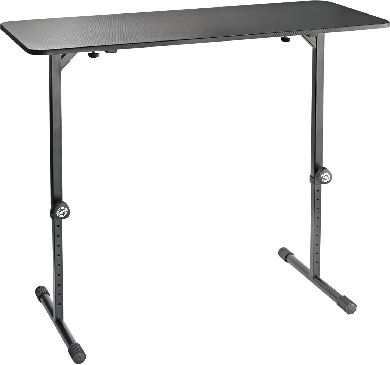 DJ столик K&M 12160-000-55 подходит для стационарной и мобильной установки.