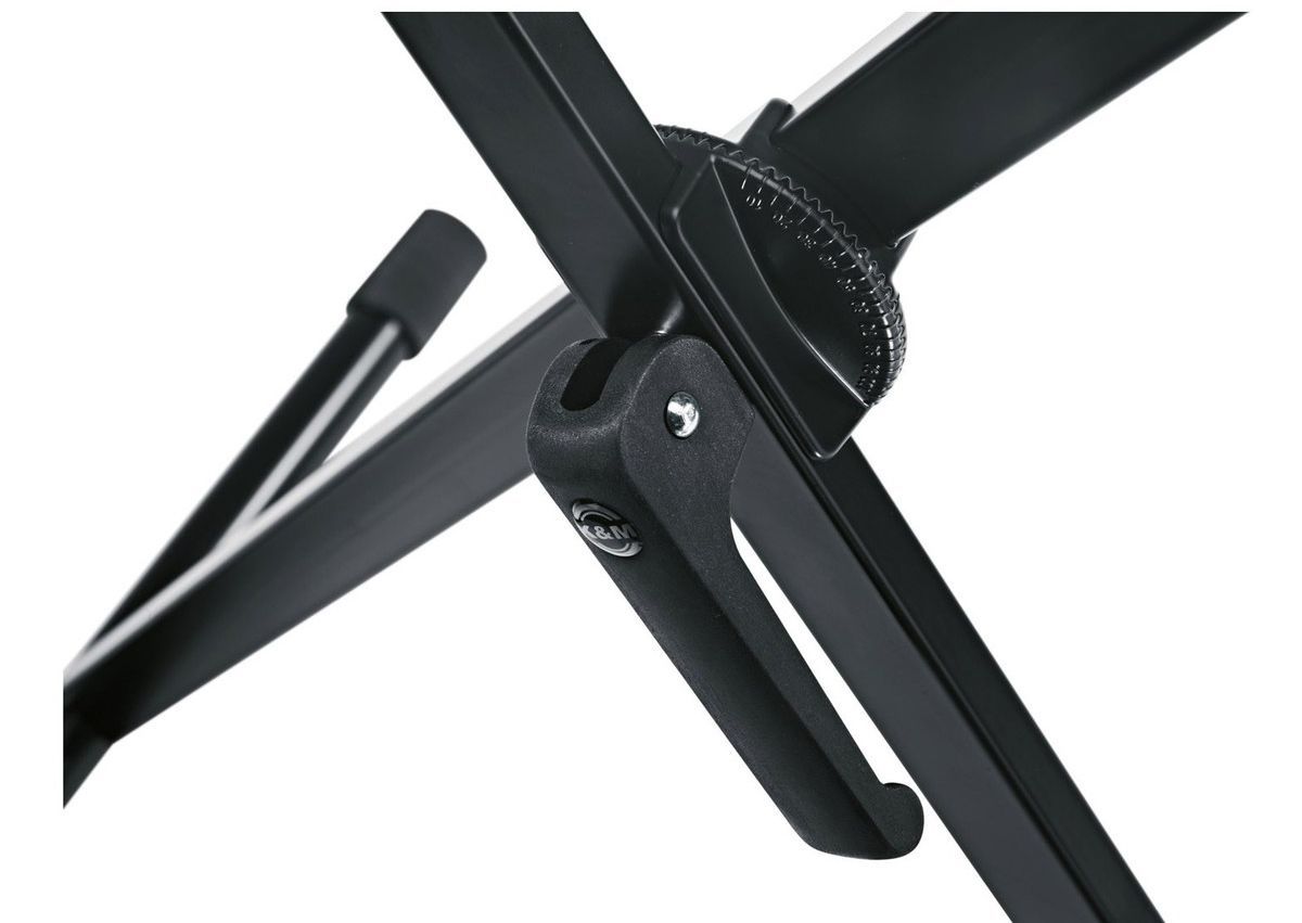 Х-образная стойка для установки клавишных инструментов K&M 18930-070-55 выпущена передовым производителем аксессуаров и комплектующих для профессионального музыкального оборудования, компанией K&M (Германия). Стойка для клавишных инструментов формата X-stand имеет устойчивое четырехножное основание, прочную стальную раму и зажимной механизм ступенчатой регулировки высоты и ширины стойки. Такая конструкция обеспечивает устойчивую и стабильную установку цифровых синтезаторов и пиано. В конструкции стойки используются прочные металлические узлы, мощные стальные трубы и оригинальный механизм регулировки высоты. X-образные стойки для клавишных используются в самых разных музыкальных и профессиональных сферах, например для установки цифровых пианино, цифровых синтезаторов и прочего музыкального оборудования.