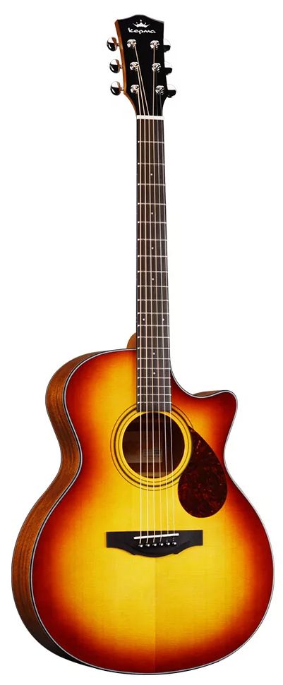 KEPMA F0E – это трансакустическая гитара с превосходным соотношением цены и качества, пользующаяся большой популярностью у музыкантов. Эргономичная форма корпуса Grand Auditorium предлагает комфорт при игре как сидя, так и стоя. Верхняя дека модели F0 сделана из массива ситхинской ели, обеспечивая красочное и яркое звучание инструмента. Корпус из красного дерева придает звуку теплоту и объем. Чистое и яркое звучание KEPMA F0E с мощными средне-низкими частотами делает эту гитару прекрасным решением для записи и живых выступлений.