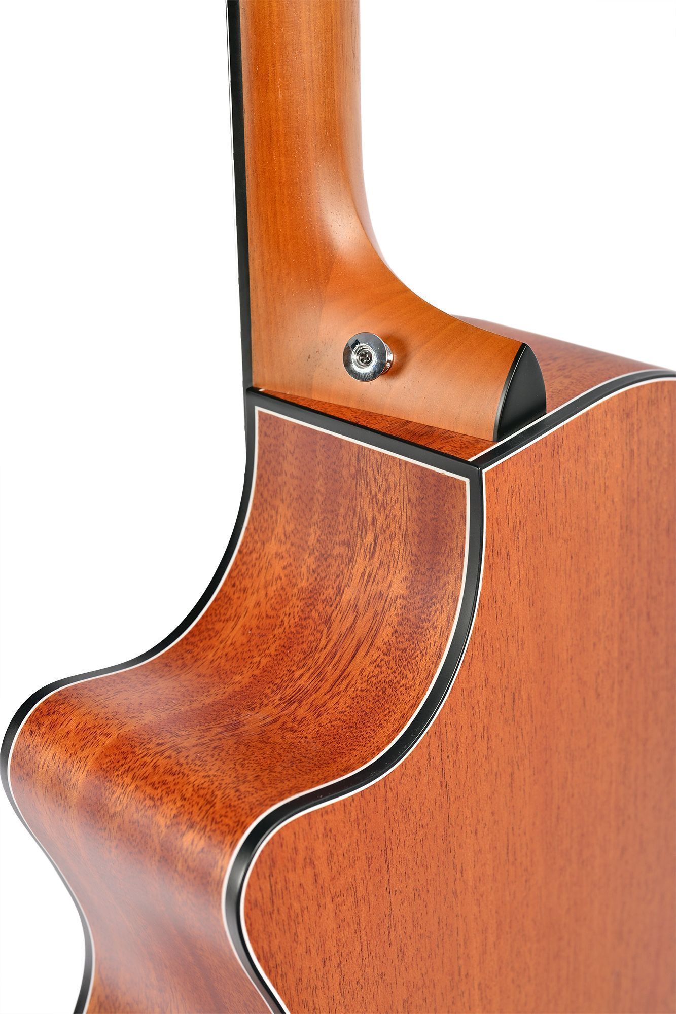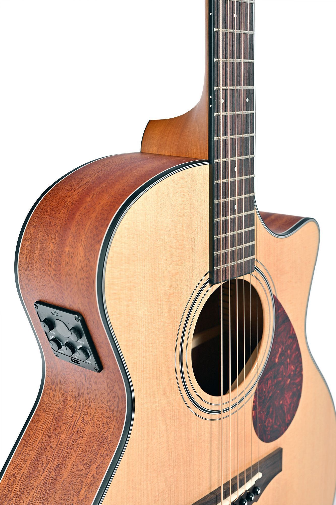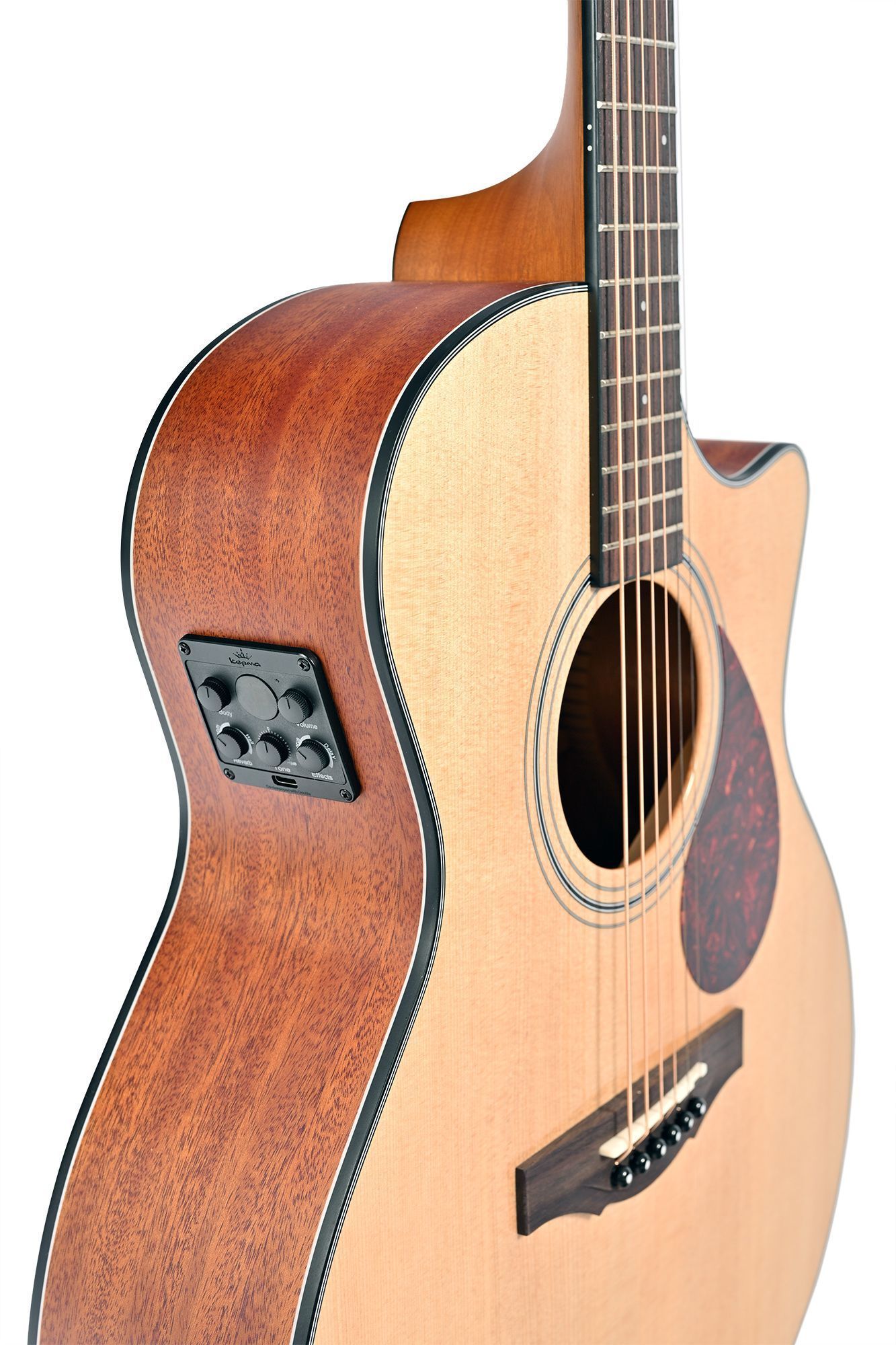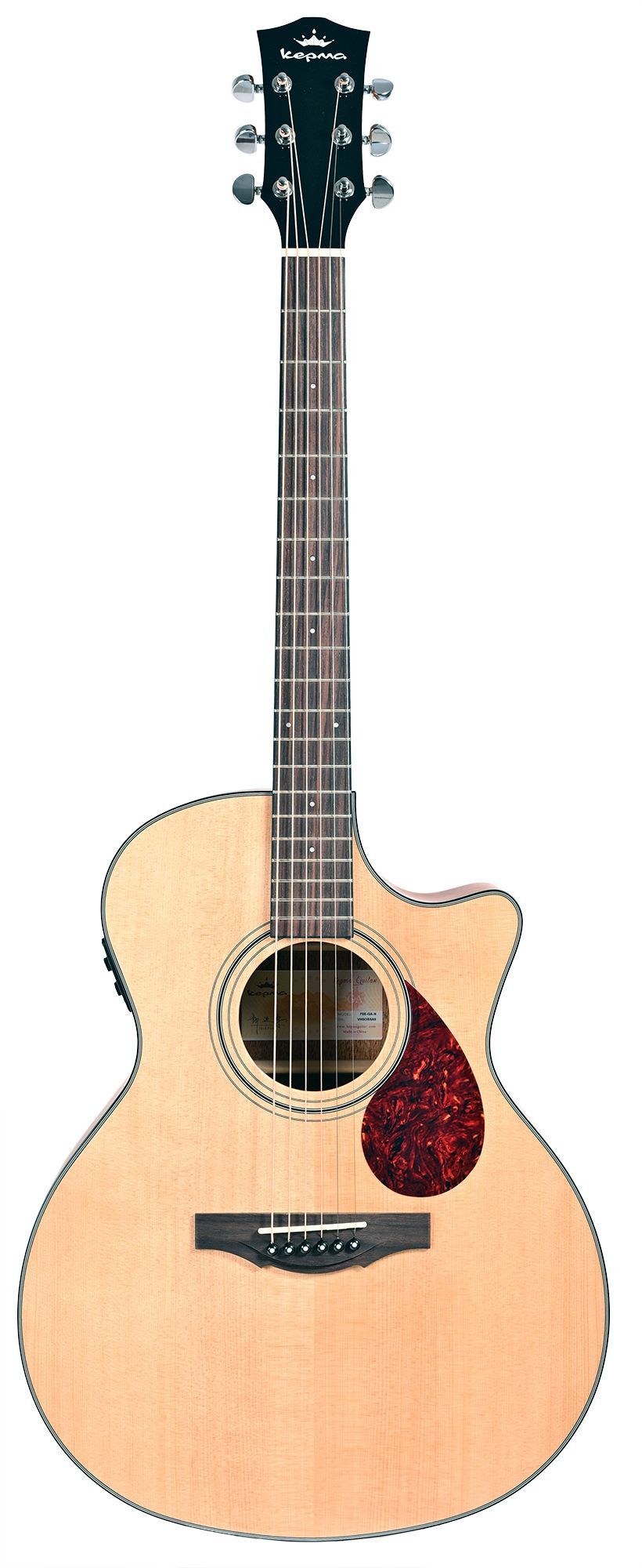 KEPMA F0E – это трансакустическая гитара с превосходным соотношением цены и качества, пользующаяся большой популярностью у музыкантов. Эргономичная форма корпуса Grand Auditorium предлагает комфорт при игре как сидя, так и стоя. Верхняя дека модели F0 сделана из массива ситхинской ели, обеспечивая красочное и яркое звучание инструмента. Корпус из красного дерева придает звуку теплоту и объем. Чистое и яркое звучание KEPMA F0E с мощными средне-низкими частотами делает эту гитару прекрасным решением для записи и живых выступлений.