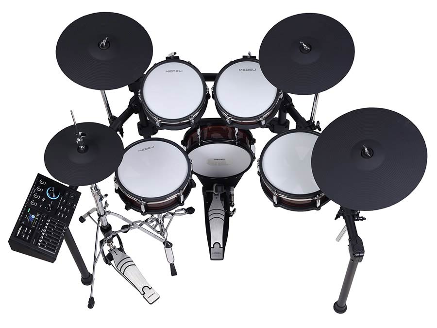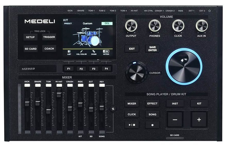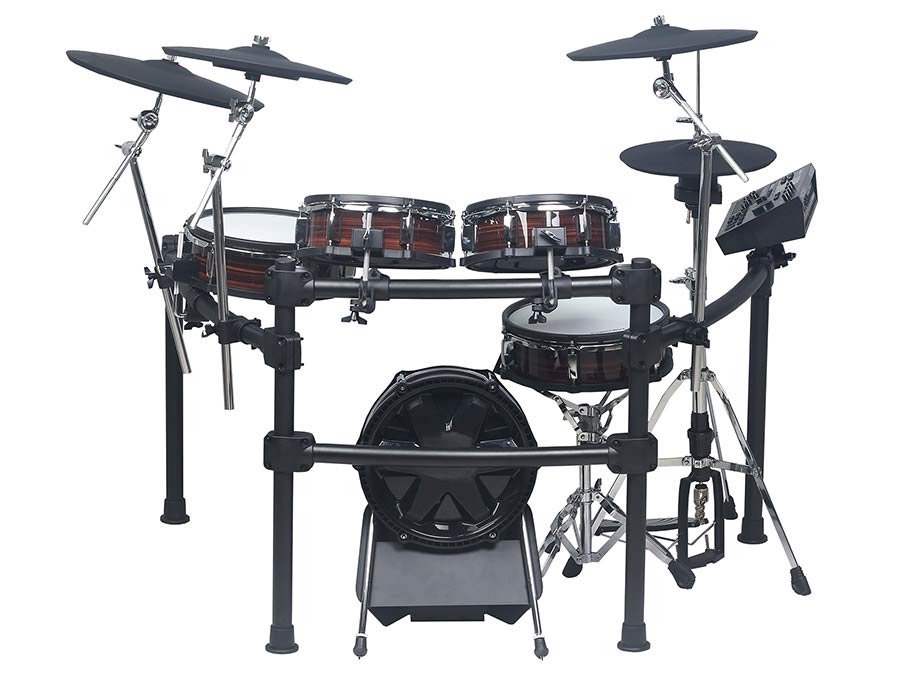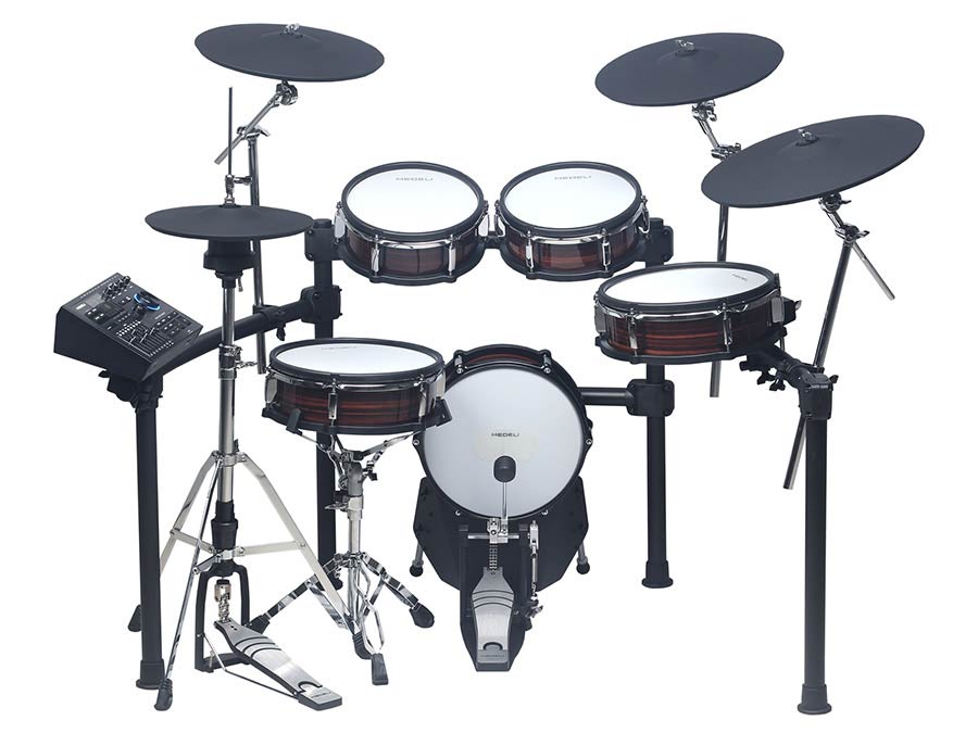 MZ923 — полноразмерная ударная установка с изысканным дизайном, отделкой "под дерево", большими тарелками и прочной, гибкой фурнитурой. В комплект входят стойка для хай-хэта, стойка для малого барабана и профессиональная педаль для бас-барабана.