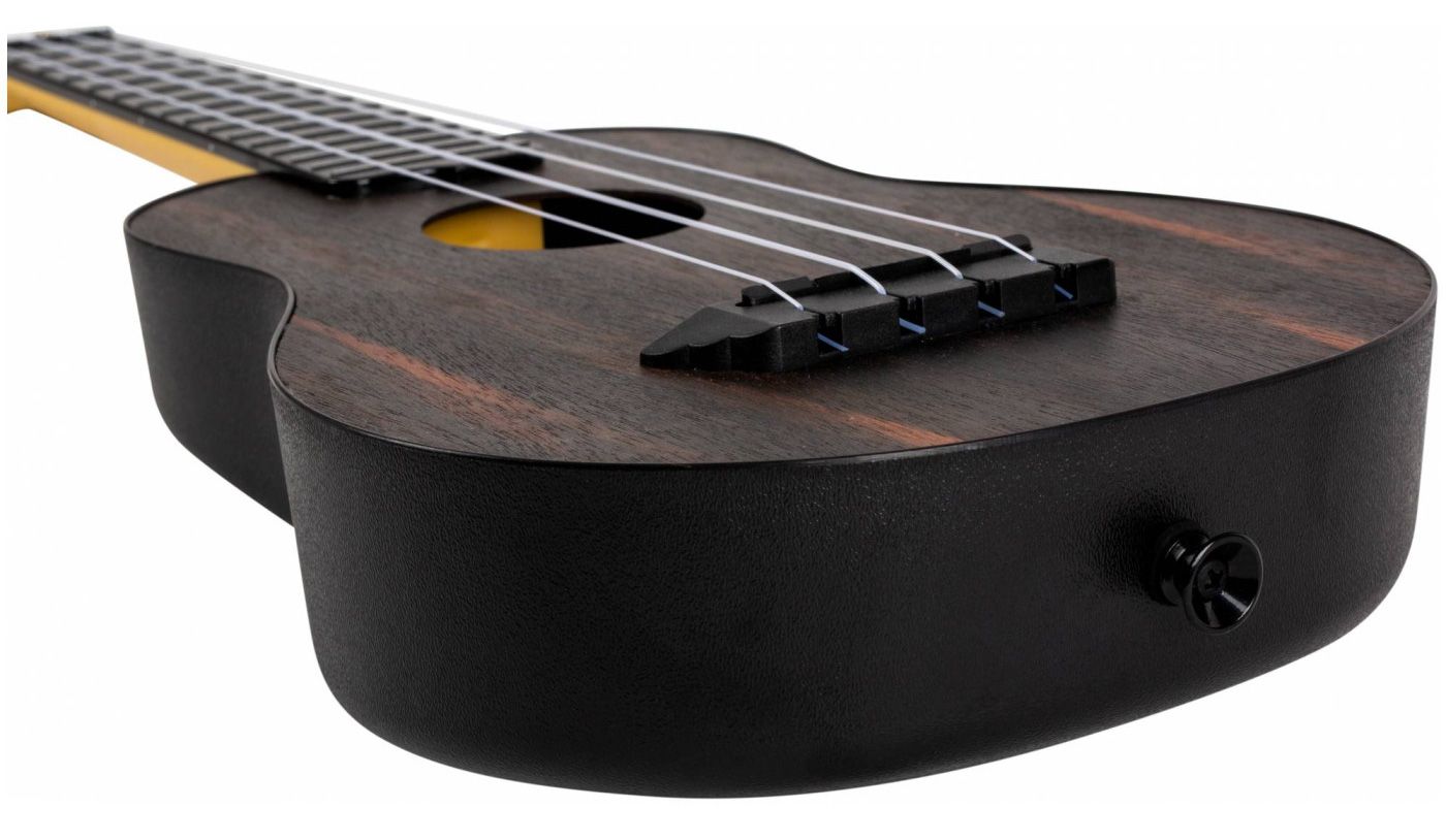 Гриф и накладка на гриф выполнены из ABS-пластика, это идеальное решение для начинающих. ABS устойчив к климатическим изменениям. Поэтому с укулеле серии Travel у вас никогда не возникнет проблем с искривлением грифа или выступанием порожков. Поверхность грифа имитирует фактуру и структуру дерева, добавляя приятных ощущений во время игры.