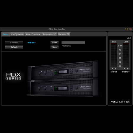 Программное обеспечение PDX Controller позволяет пользователю настраивать функции DSP, такие как кроссовер, параметрический эквалайзер, задержка, лимитер, динамический эквалайзер и микширование входов, что делает серию PDX подходящей для широкого спектра инсталляционных и туровых применений. Управлять усилителем можно с передней панели или через софт PDX Controller, подключившись к ПК через USB.