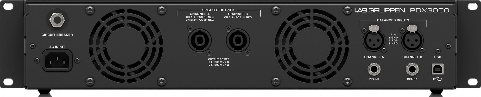 PDX3000 — двухканальный усилитель с DSP-управлением, обеспечивающий мощность 2 x 1500 Вт для концертных приложений начального и среднего уровня. Усилители серии PDX используют уникальный выходной каскад IDEEA класса D, идеально соответствующий номинальной выходной мощности. Для обеспечения гибкости каждый канал предлагает существенный диапазон напряжения и ток для работы с нагрузками с любым импедансом без дополнительной конфигурации. Для обеспечения низких тепловых потерь, а также высокого напряжения, выходные каскады усилителя выполнены  по мостовой схеме.