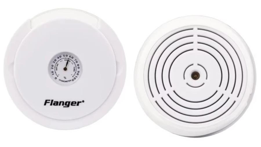 Простой в использовании гигрометр указывает уровень влажности внутри корпуса гитары (оптимальный уровень влажности находится в диапазоне 45-60%).